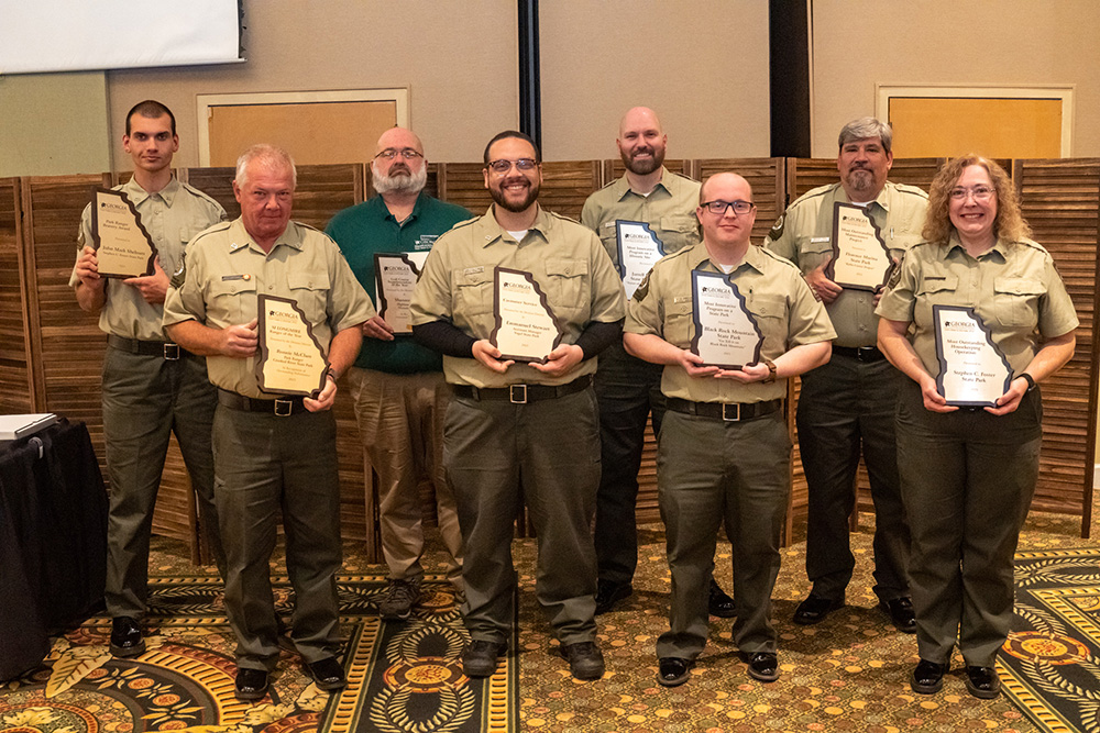 Several Georgia State Park and Historic Site employees were honored recently during a Rangers Conference held at Unicoi State Park. Around 140 assistant managers, interpretive rangers, administrative staff and maintenance rangers participated in training activities, team building and sharing ideas. The conference included an awards ceremony celebrating the efforts of those who make more than 60 sites outstanding destinations for Georgia’s citizens and visitors. Learn more at GaStateParks.org/awards.